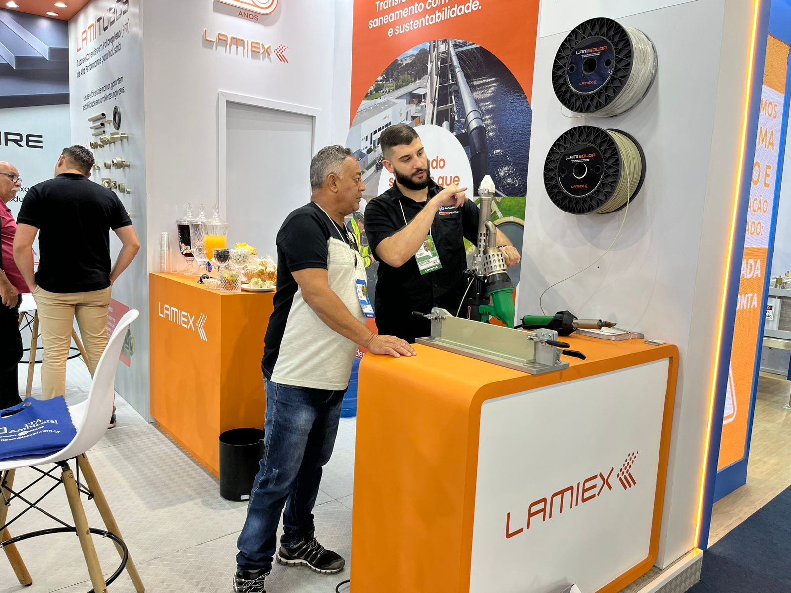 Lamiex Plásticos en la FENASAN 2024, evento de saneamiento ambiental realizado en São Paulo, Brasil, con enfoque en soluciones sostenibles y tecnologías para el sector del agua