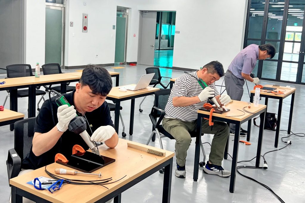 Una de las principales misiones de la KOMSA es difundir las ventajas de los barcos de PEAD a las comunidades pesqueras de Corea del Sur. Para ello, la entidad realiza visitas a aldeas de pescadores para demostrar en la práctica cómo estas embarcaciones son más eficientes y sostenibles. Durante estas visitas, se realizan demostraciones en vivo de soldadura de láminas de PEAD, permitiendo que los pescadores prueben el material y vean la calidad profesional de los equipos de soldadura por extrusión de Leister.