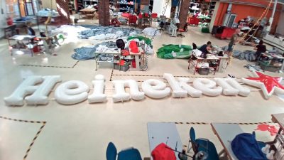 Nasoallinsù trabaja con marcas y agencias de comunicación prestigiosas de diversos sectores, desde la industria alimentaria hasta productos de lujo. La creatividad de la empresa destaca en el diseño de objetos inflables originales que impresionan visualmente y satisfacen las necesidades de sus clientes internacionales. Anteriormente, el enfoque de Nasoallinsù estaba en objetos cosidos fabricados con tejidos, los cuales se inflaban mediante motores eléctricos que proporcionaban un flujo continuo de aire. Sin embargo, en los últimos años, la demanda de objetos plásticos inflables ha crecido significativamente. Estos inflables, como se les conoce en el sector, se mantienen inflados sin necesidad de una conexión eléctrica constante, lo cual es una ventaja en aplicaciones que implican contacto con agua, ya que tradicionalmente el agua y los motores eléctricos no se combinan bien.