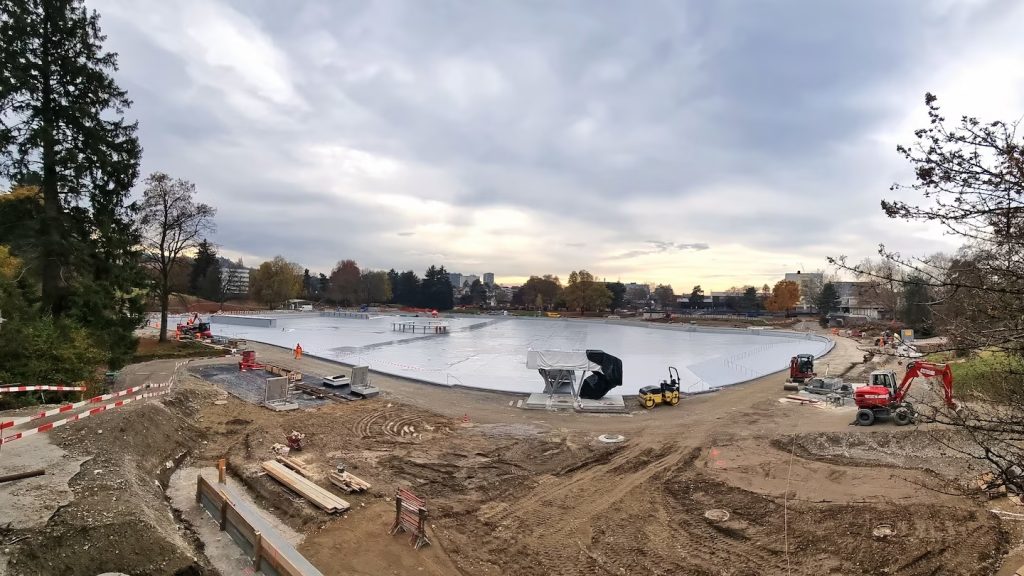 El 27 de septiembre de 2020, los votantes aprobaron un préstamo de construcción de 48 millones de francos suizos (aproximadamente 50 millones de dólares estadounidenses), y los trabajos comenzaron el 16 de noviembre del mismo año. El núcleo del proyecto consistió en instalar un nuevo sistema de tratamiento de agua, revestir completamente la piscina existente con láminas plásticas resistentes al cloro con estabilizador UV y renovar los edificios administrativos.