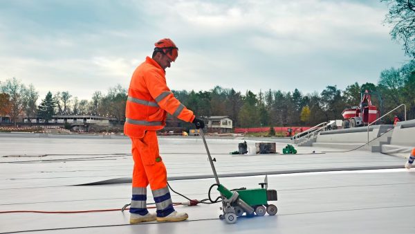 Las uniones longitudinales y transversales debían ser continuas en toda la piscina. Para lograrlo, los revestimientos se tensaron y fijaron primero, evitando la formación de arrugas. Luego, las membranas plásticas del piso fueron soldadas con las máquinas automáticas Leister VARIMAT y VARIMAT V2. Ambas están diseñadas para soldar grandes superficies.