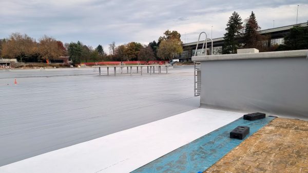 Tras un total de siete meses de soldadura, toda la piscina quedó sellada. Durante ese tiempo, los instaladores trabajaron casi seis días a la semana. Zoran Antic, empleado de Tecton AG, comentó: “Tuvimos que aprovechar cada día de buen clima, incluso los sábados”. El esfuerzo valió la pena. Cuando llegó el otoño, el ritmo de trabajo diario se redujo a un tercio del de verano, debido a las bajas temperaturas, lluvia, rocío, hojas caídas y menor luz solar, lo que complicó las condiciones de trabajo.