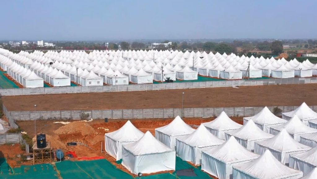 Skyroof Enterprises de Bangalore está activa en la producción de carpas y telas tensadas desde hace más de 16 años. La empresa se especializa en lo que se conoce como construcciones tipo pagoda en varios tamaños. Son diseños de carpas cuya característica principal son sus formas de techo muy puntiagudas. “Nosotros proveemos tanto a grandes empresas como a clientes particulares en toda la India, desde los valles pacíficos de Cachemira hasta las vibrantes costas de Kanyakumari”, explica el CEO Suresh Chellam.