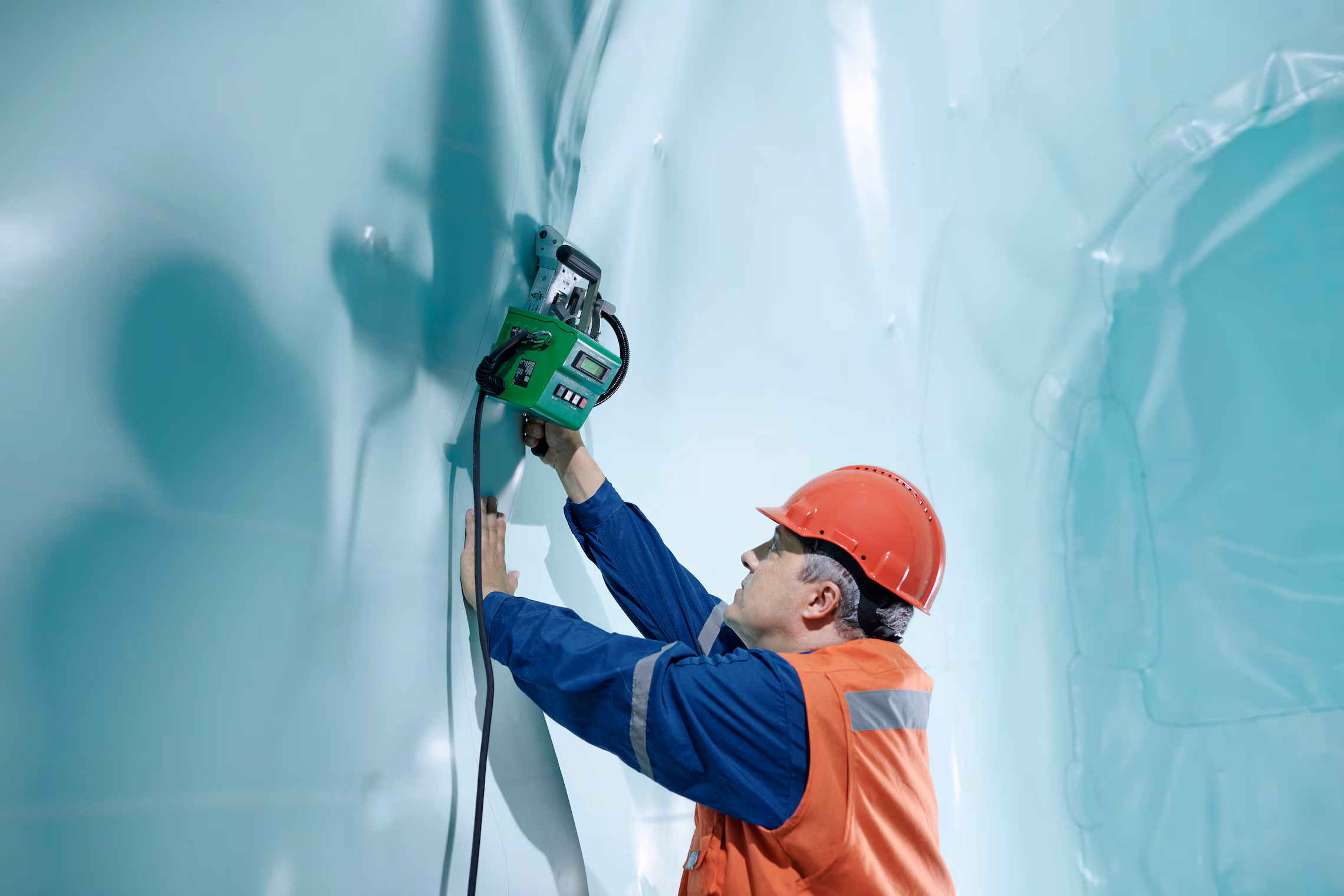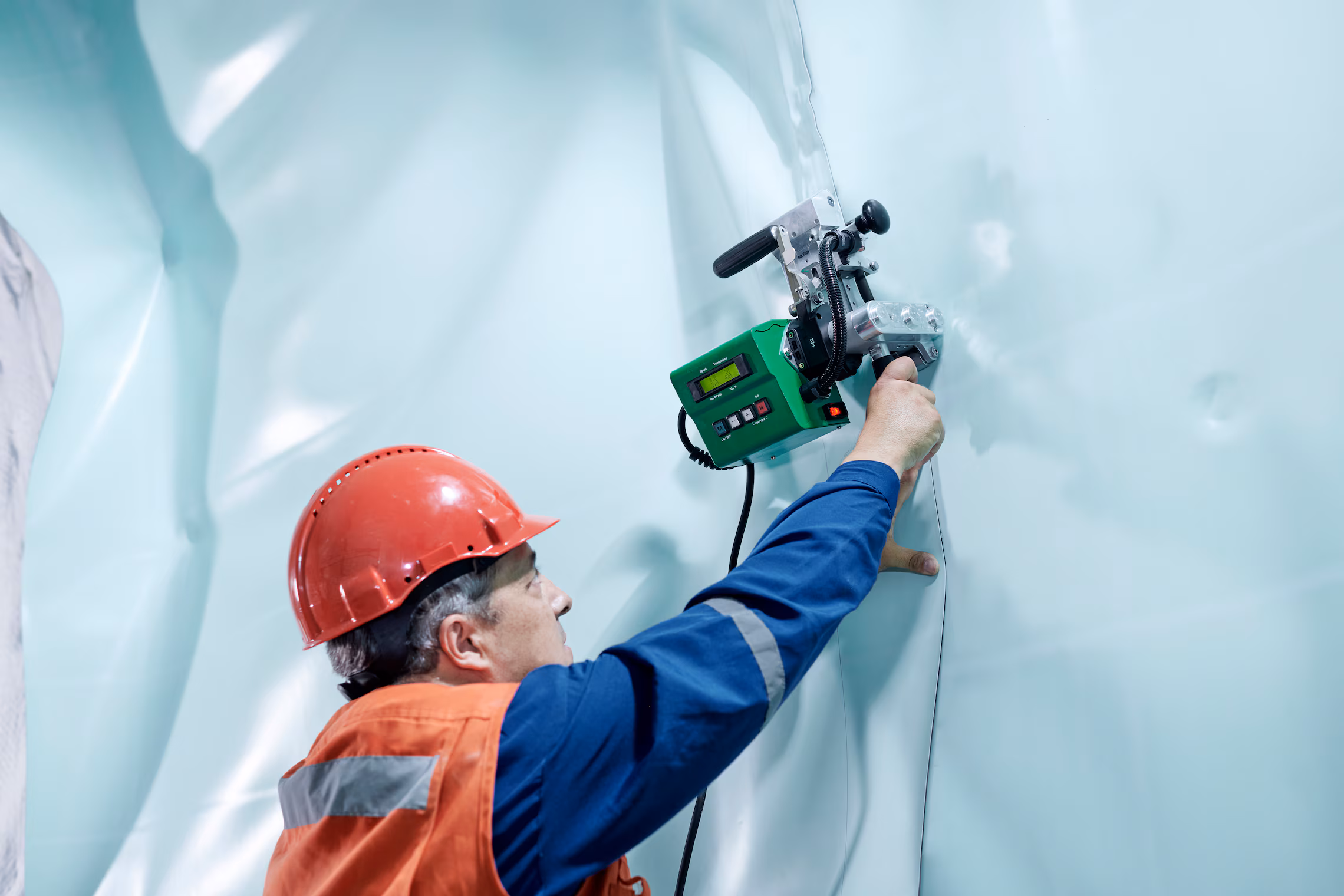 Esta máquina de soldadura compacta y resistente se utiliza en todo el mundo. Es pequeña y fue desarrollada especialmente para exigencias en rellenos sanitarios, minas, túneles, lagunas, silos, lagos de tratamiento y lavadores.