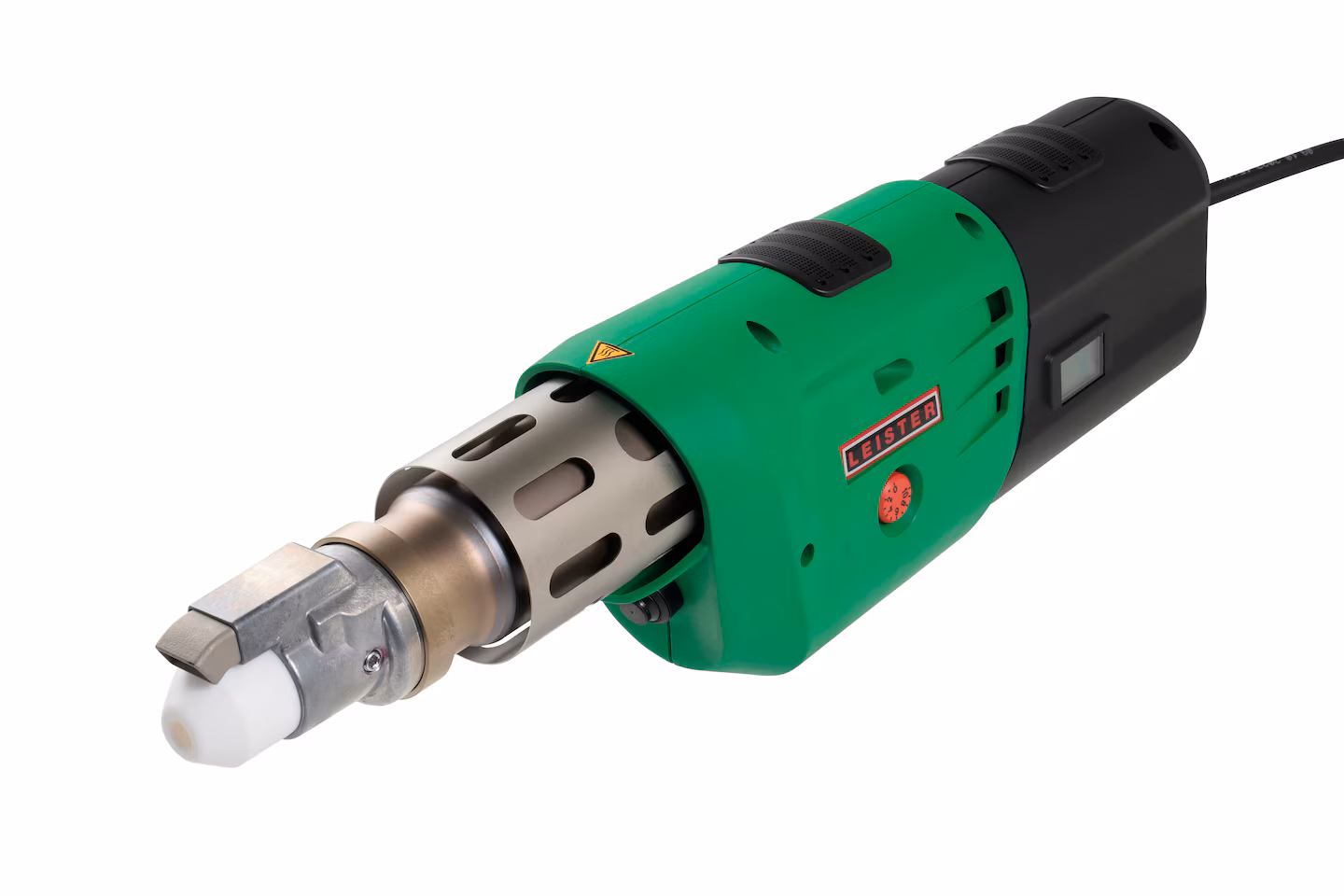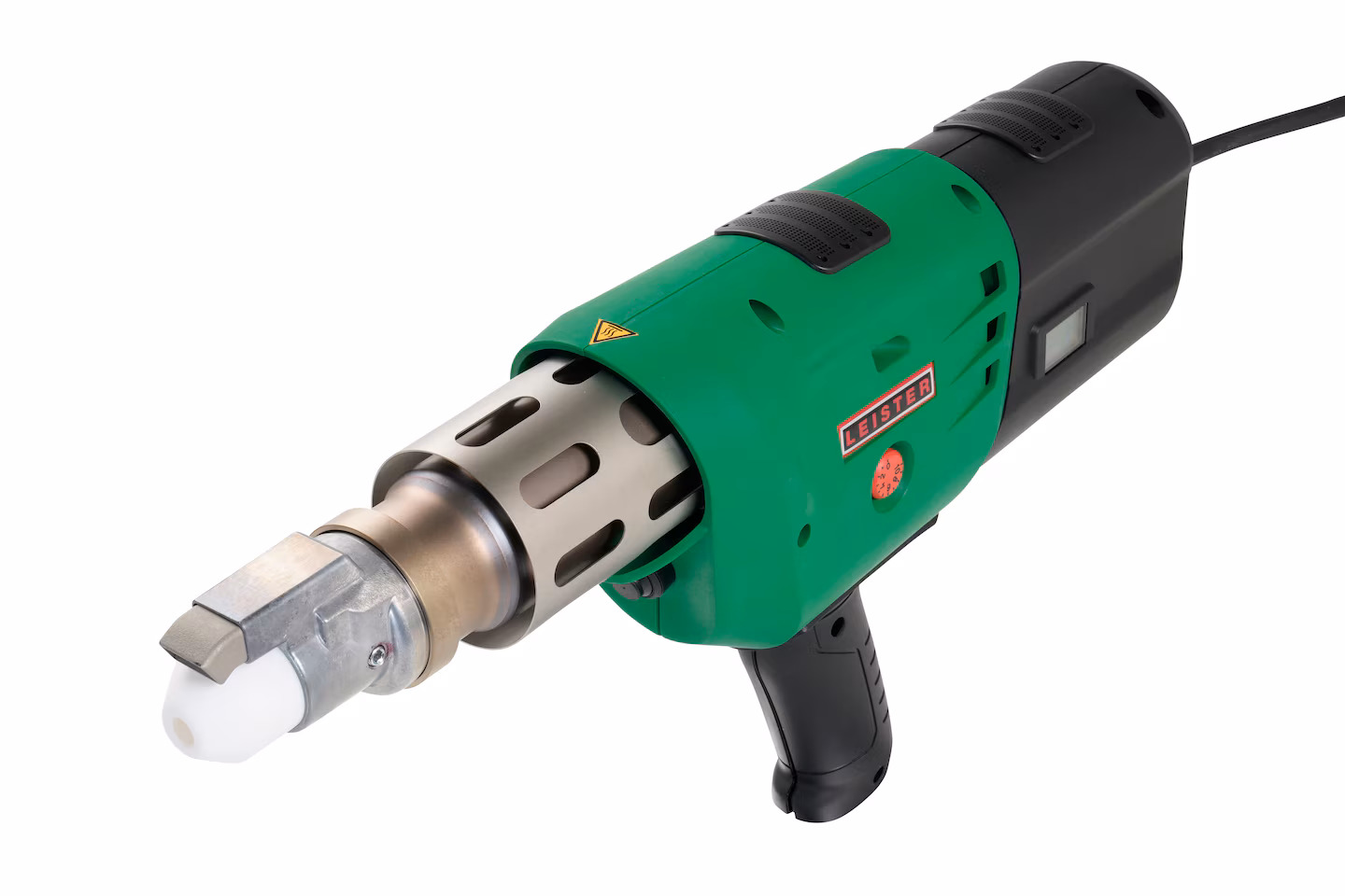 Diseño compacto y ligero, la Leister FUSION 1 es una extrusora manual ideal para reparar plásticos, soldar chapas y tuberías de PP y PE en espacios reducidos.