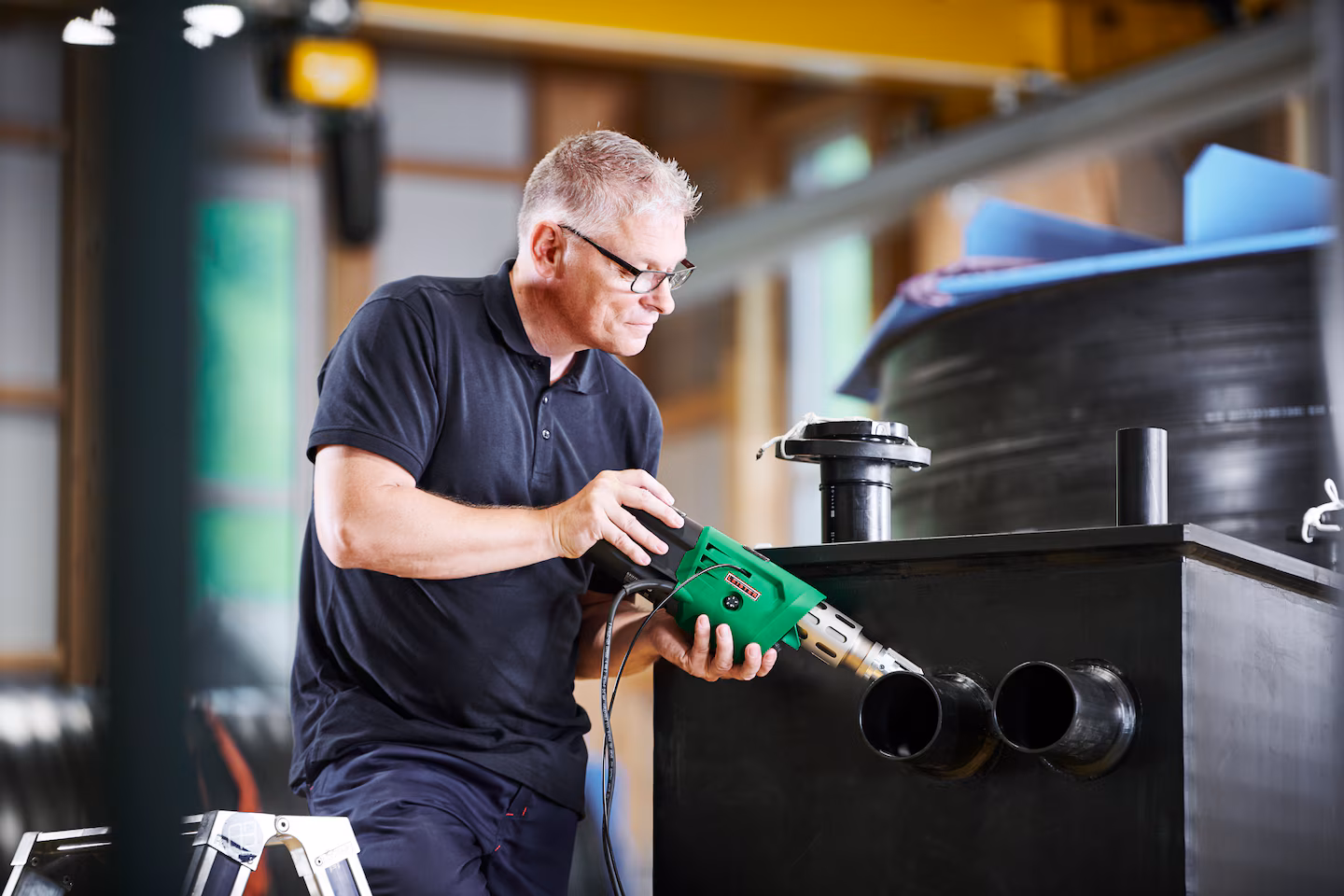 La Leister FUSION 1 redefine la soldadura por extrusión gracias a su diseño compacto y ergonómico, siendo la extrusora más fina y ligera desarrollada por Leister. Pensada especialmente para trabajos en espacios reducidos, es la herramienta ideal para reparaciones plásticas, soldadura de tuberías, tanques y componentes de poliolefinas.