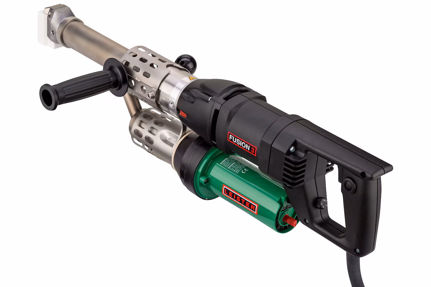 La Leister FUSION 3 es una extrusora manual robusta, alargada y ergonómica, especialmente diseñada para aplicaciones intensivas en la soldadura de plásticos técnicos (PP, PE, PEAD, HDPE) y geomembranas de alta resistencia.