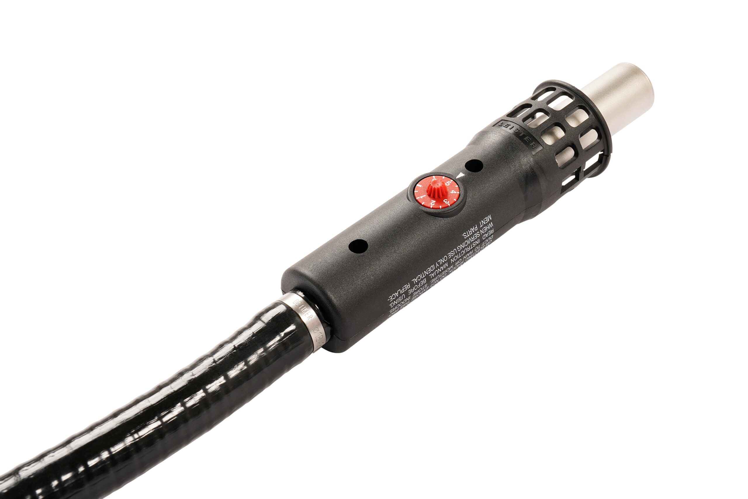 - Versatilidad de conexión: compatible con sopladores externos Leister (MINOR, ROBUST, AIRSTREAM) o aire comprimido.