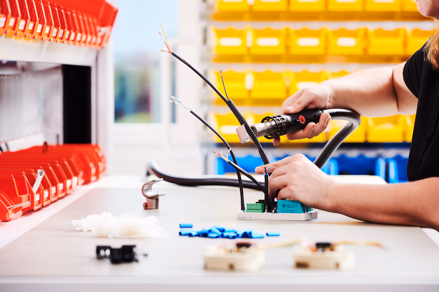 - Encolhimiento de cables y mangas retráctiles.