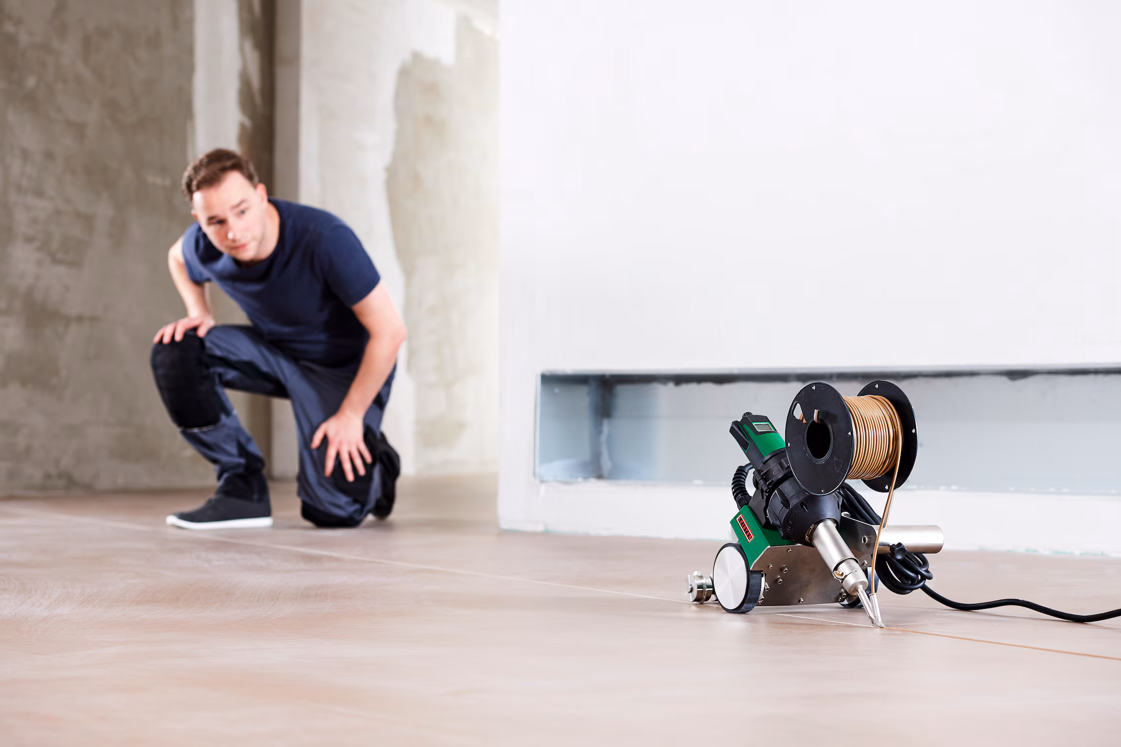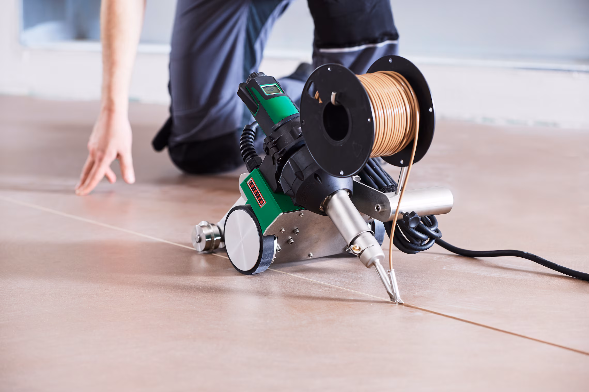 Leister MINIFLOOR con estructura liviana y velocidad de soldadura eficiente para pisos vinílicos
