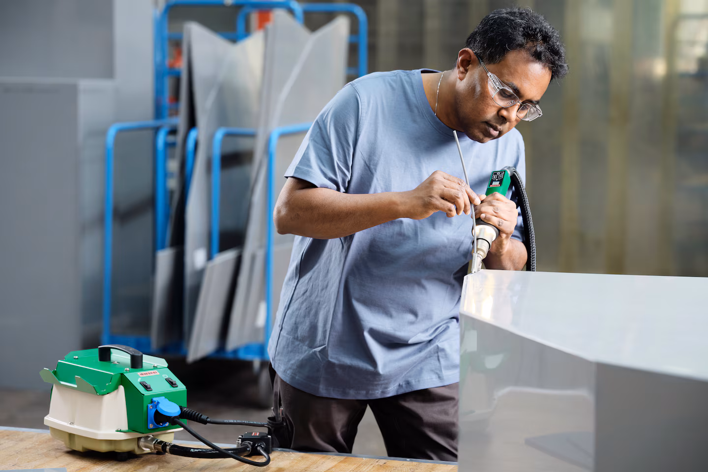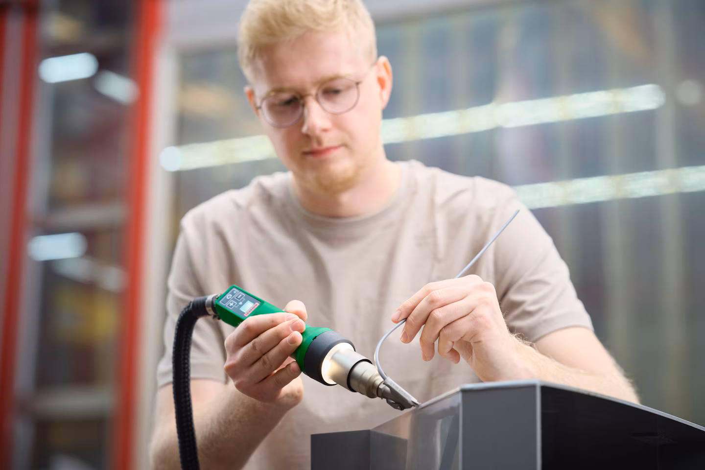 El Leister PENWELD A es el soldador tipo lápiz más avanzado para plásticos termoplásticos (PP, PE, PVC). Con luz LED integrada, control digital de temperatura y varias configuraciones de potencia y manguera, ofrece la combinación perfecta de precisión, ergonomía y confiabilidad suiza.