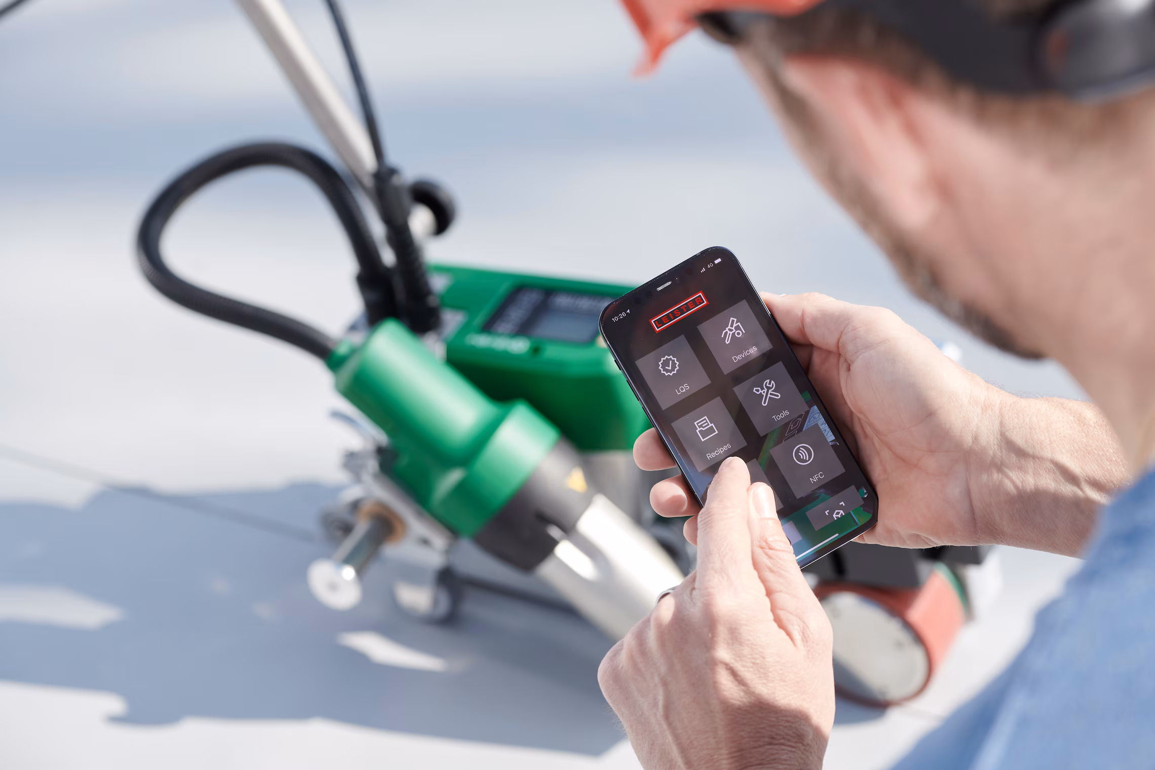 Otra ventaja es LiveView con la app myLeister. Esto permite que los responsables de obra verifiquen los parámetros de soldadura de la UNIROOF 700 directamente en su smartphone o tablet.