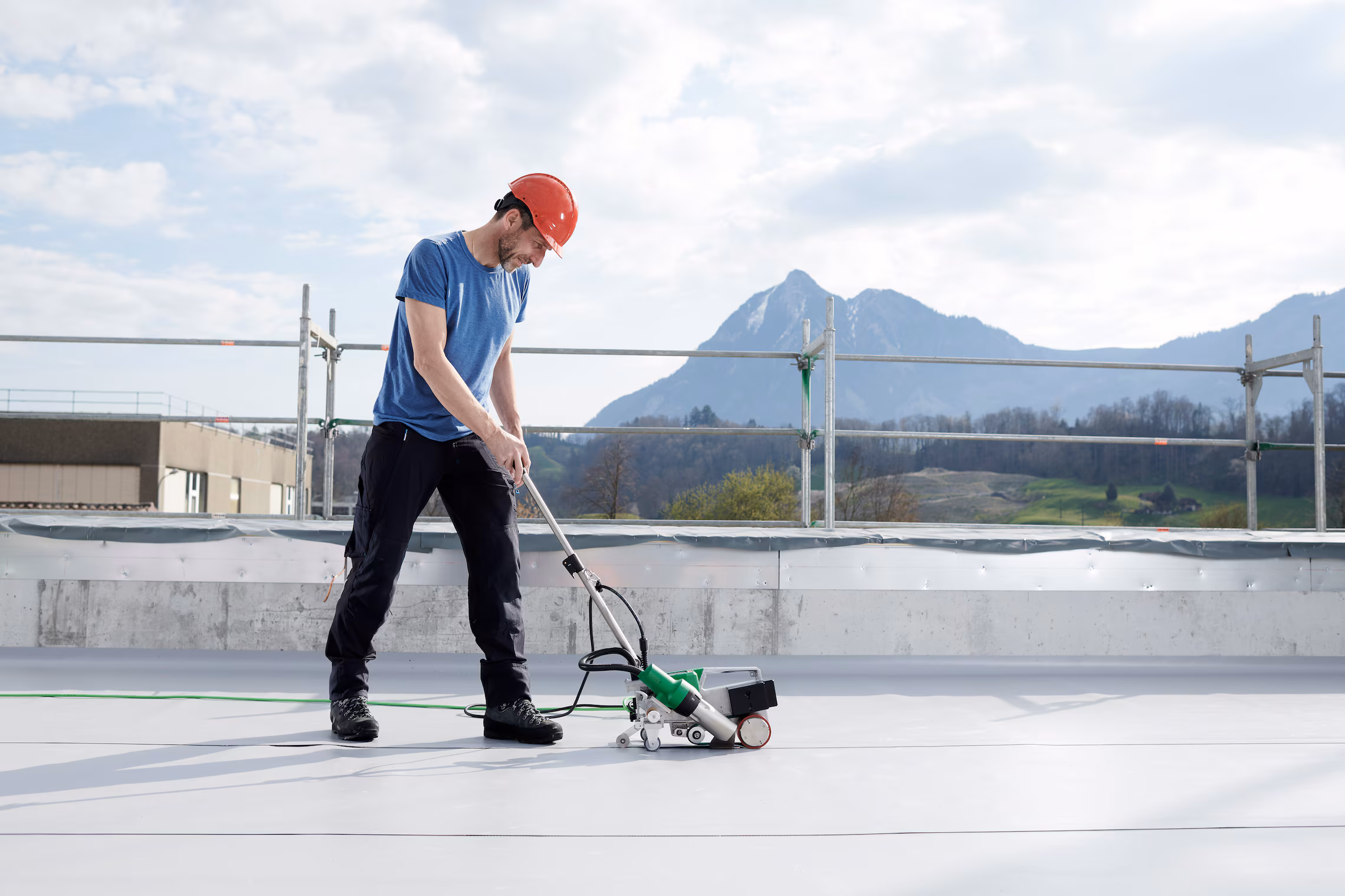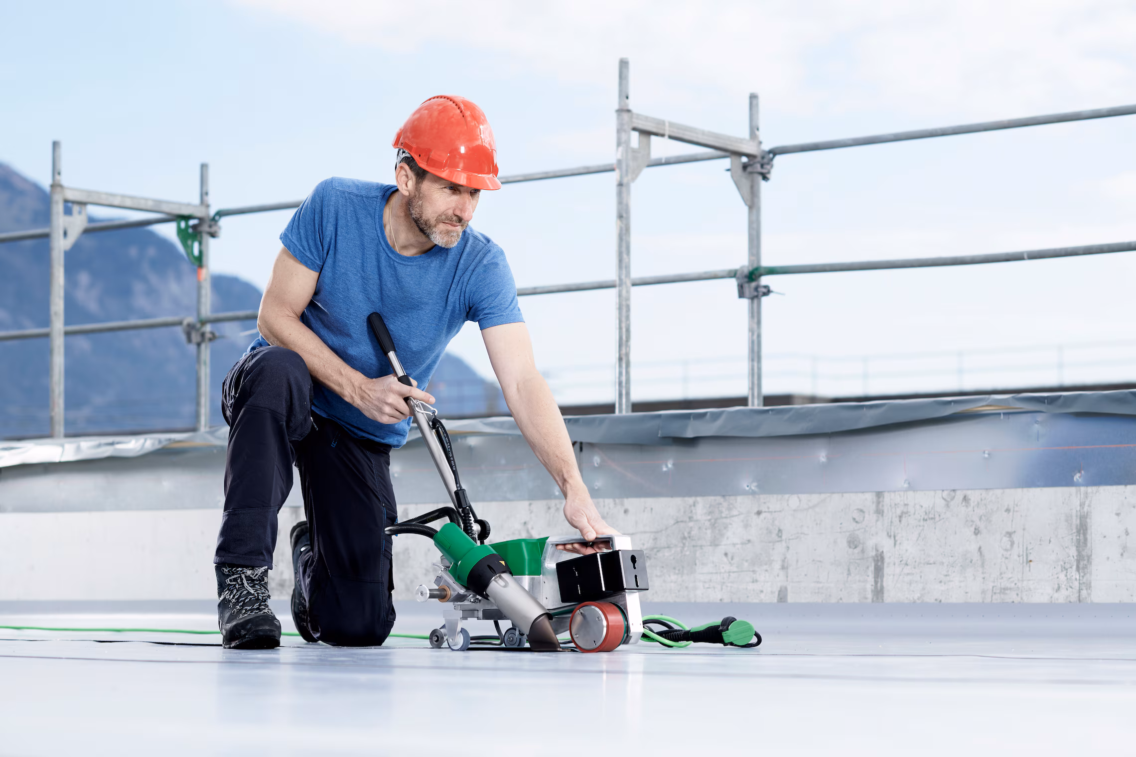 En modo Eco, la UNIROOF 700 ahorra hasta un 30 por ciento de energía cuando la temperatura y el volumen de aire alcanzan sus capacidades máximas. Gracias a su diseño delgado y al eje de transporte móvil, ya no es necesario un reajuste que consume tiempo para distintas aplicaciones. La UNIROOF 700 suelda cerca del borde con facilidad, hasta 100 mm en y sobre el parapeto, en techos grandes y planos o en áreas de difícil acceso como domos de tragaluz.