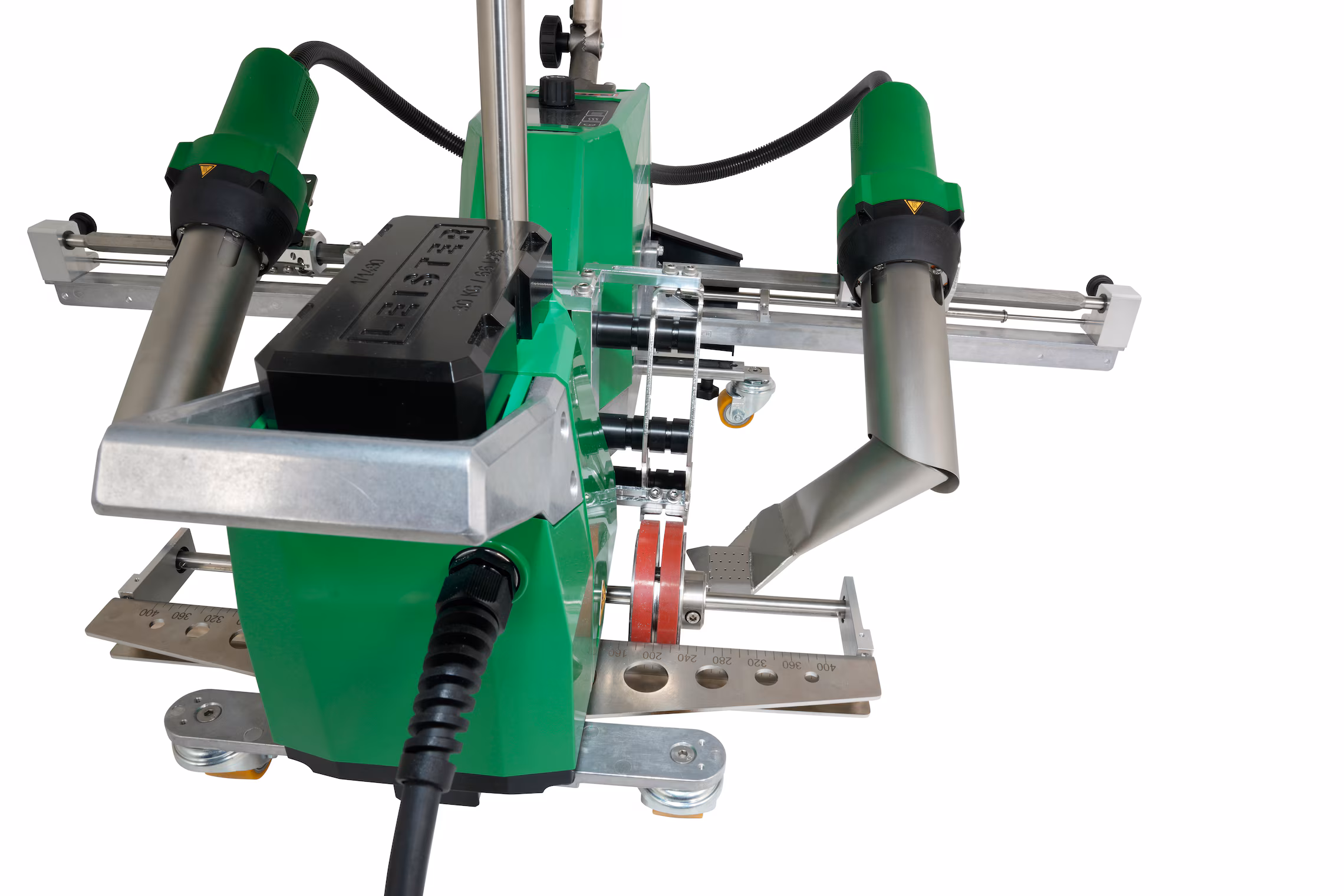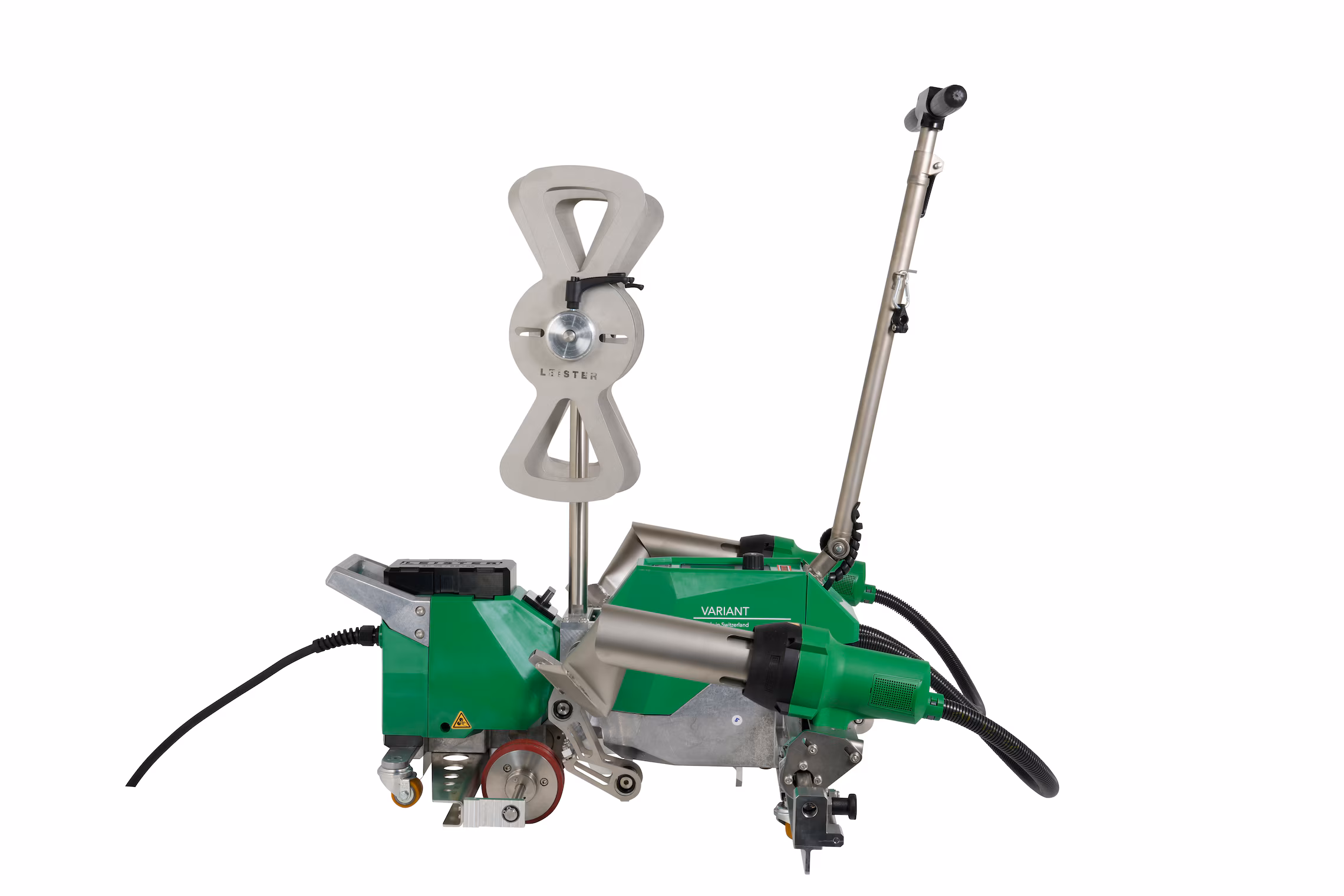La máquina de soldadura VARIANT 708 se destaca por su versatilidad y eficiencia. Su sistema de doble boquilla permite soldar simultáneamente dos cintas antivandalismo y reducir el tiempo de soldadura en un 50%. Incorpora una operación inteligente de un solo toque que garantiza seguridad y precisión. Su diseño modular permite cambiar fácilmente de spriegel a soldadura por solape o soldadura con cinta antivandalismo, con velocidad de hasta 20 m/min, siendo ideal para producción de lonas de camión.