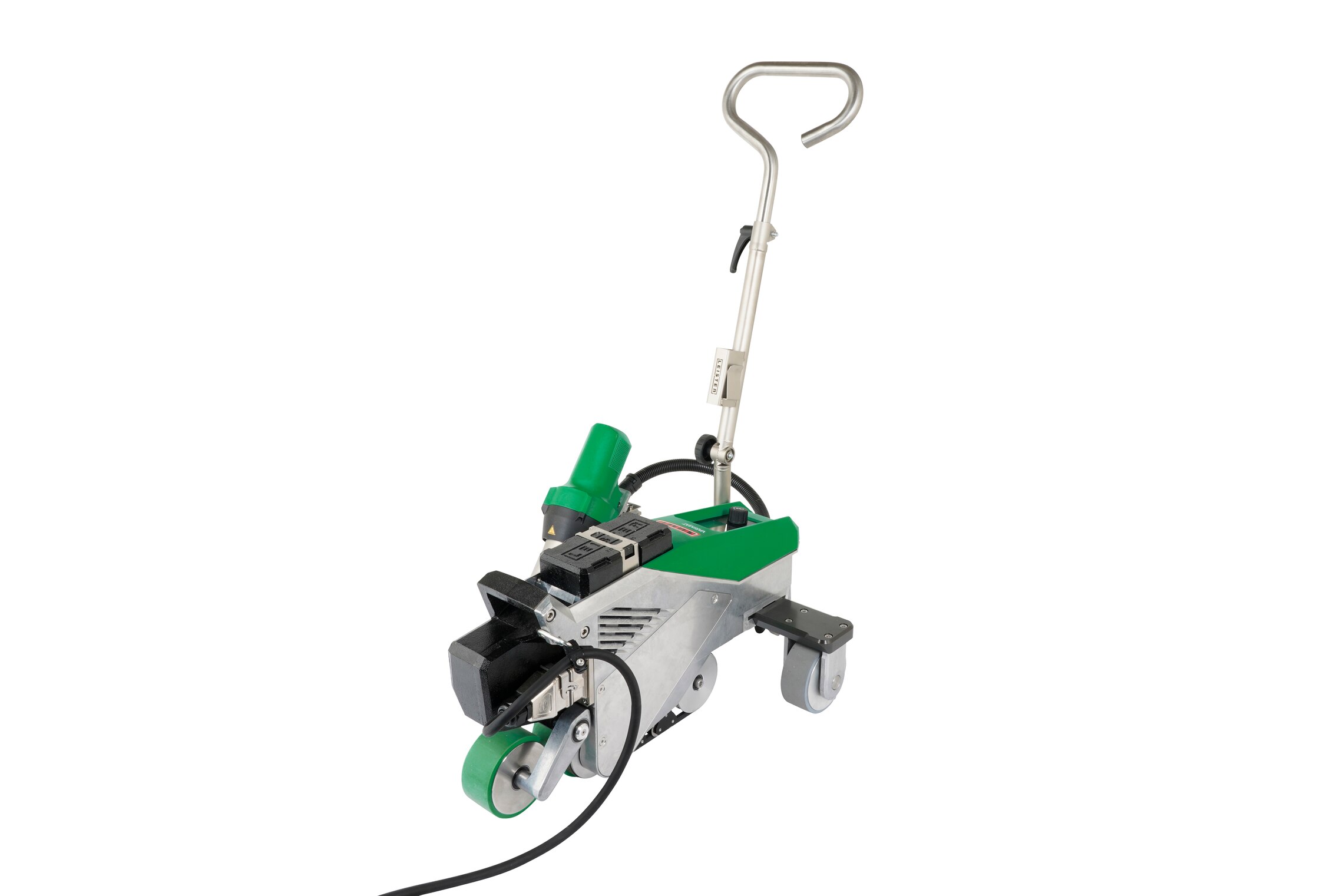 Leister VARIMAT 500 tiene un peso base (14 kg) y un peso adicional (3 kg) para generar una fuerte presión de contacto. Para facilitar el transporte, ambos pesos pueden retirarse.