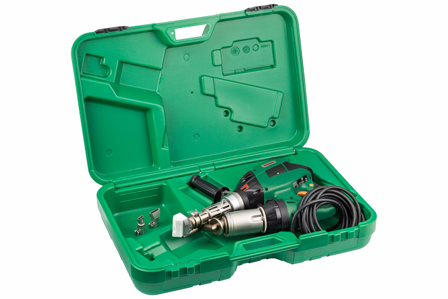 La Leister WELDPLAST S2 PVC es la extrusora manual perfecta para la soldadura profesional de PVC-U, ofreciendo protección anticorrosiva, control digital y producción confiable de hasta 2 kg/h.