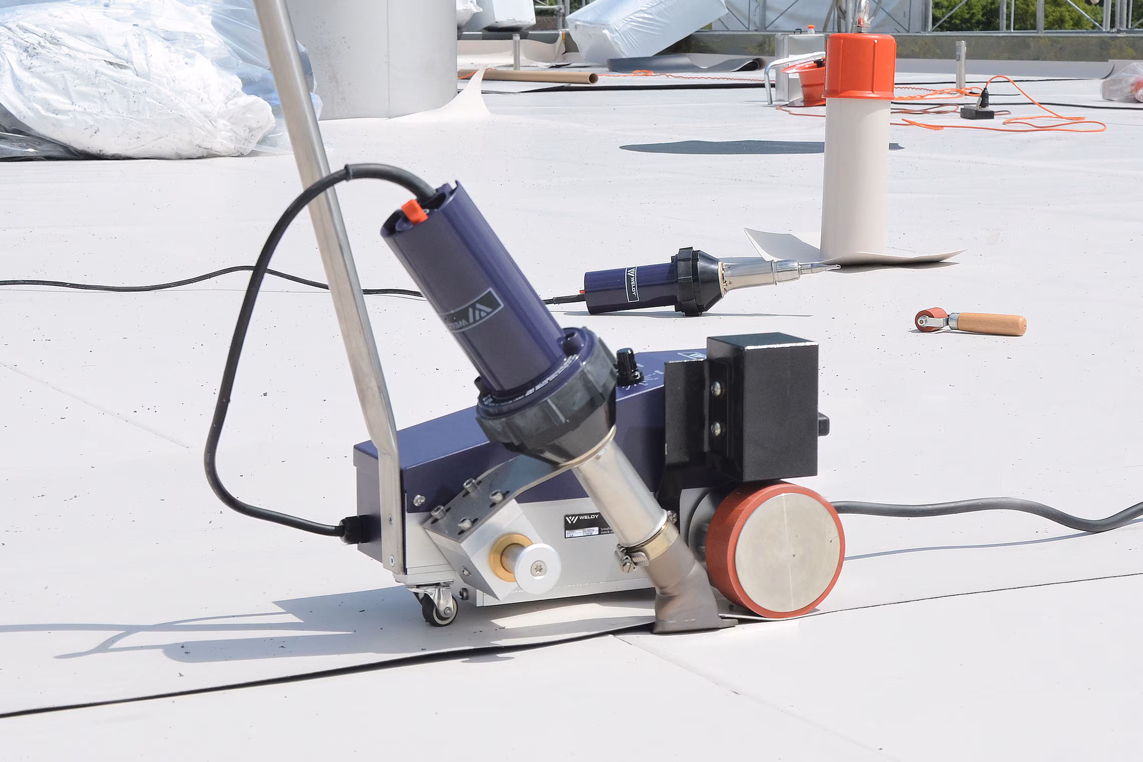 Ideal para lonas y banners, Weldy FOILER ETL ofrece uso intuitivo, arranque automático y orientación precisa durante la soldadura por superposición y en dobladillos. El rodillo guía integrado garantiza un desplazamiento estable, facilitando la soldadura de lonas, membranas y banners con mayor precisión. Está disponible en dos versiones, con boquillas de 20 mm o 30 mm, y puede incorporar un dispositivo adicional para elevación del material.