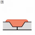 Es importante que el cordón de soldadura quede completamente fundido en la ranura creada con una fresa manual o eléctrica. El exceso de cordón se recorta al nivel de la superficie en dos etapas con el Cuchillo Media Luna de Leister: Primera etapa: el exceso de cordón se corta inmediatamente después de la soldadura, utilizando el cuchillo junto con la guía. Segunda etapa: se corta nuevamente solo con el cuchillo, después de que la soldadura esté completamente fría. Esto evita que el cordón quede por debajo del nivel de las mantas de piso, produciendo una superficie plana y nivelada.